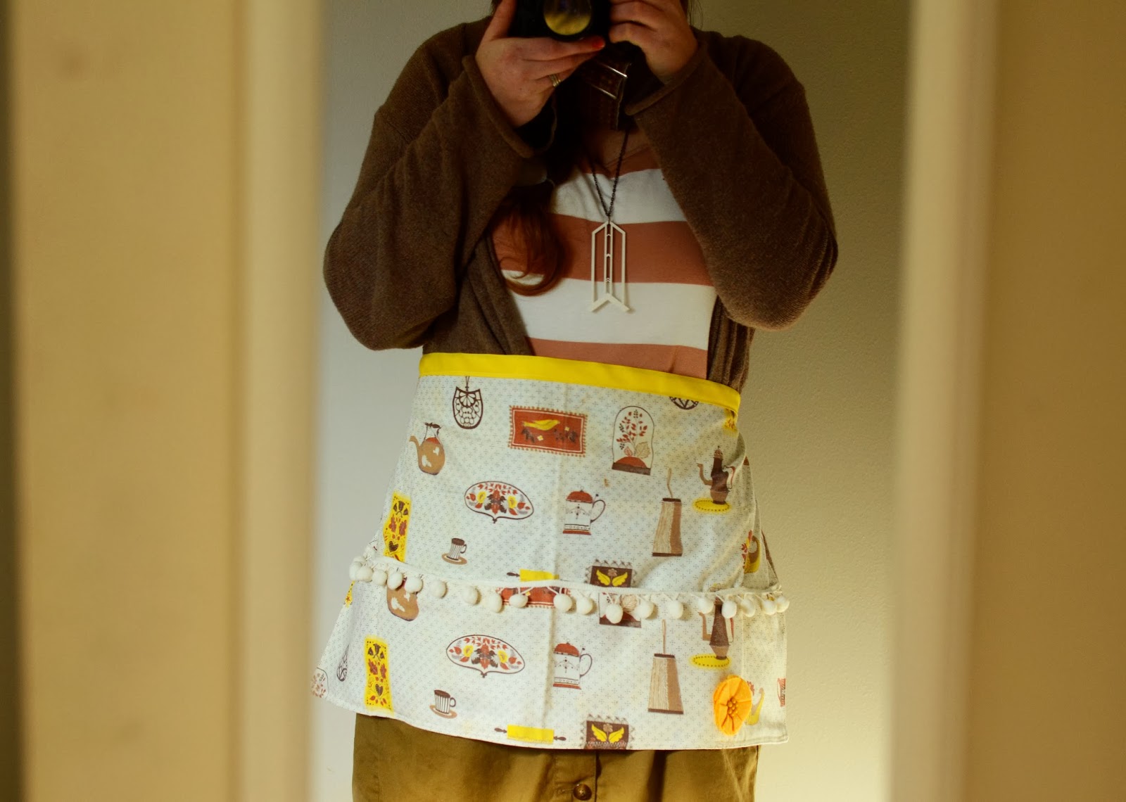 i also made my first apron! i found this adorable fabric while visiting ashley & knew it would make the cutest apron.